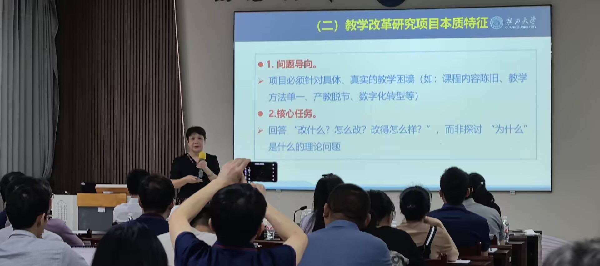 曾冬梅教授以《教学改革项目申报技巧》为题,围绕教改项目定义、申报核心要点、选题方向建议三大板块进行系统讲解,深入阐释了教学改革“改什么、怎么改、改得怎么样”的核心任务。她结合自慰